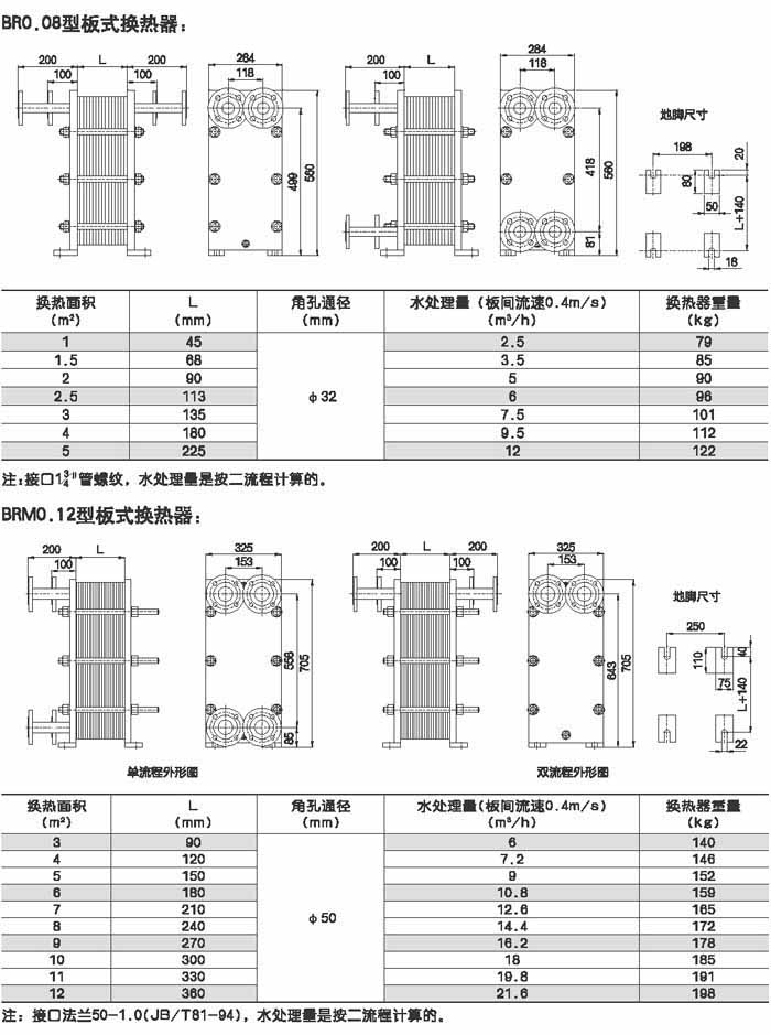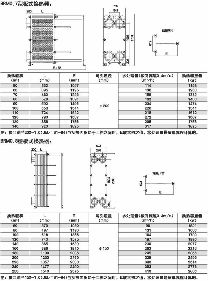 BRMO.0是指單片換熱板片的有效換熱面積為0.g平方米,其它型號的意義相同。選擇某種型號采用不同數量的換熱板片就可組裝成所需換熱面積的換熱器。
